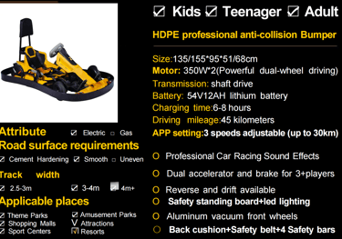 go karts, with electric motor and lithium battery with adjustable speed, maximum speed reaching 90 km/h stylish racing go karts for every age group